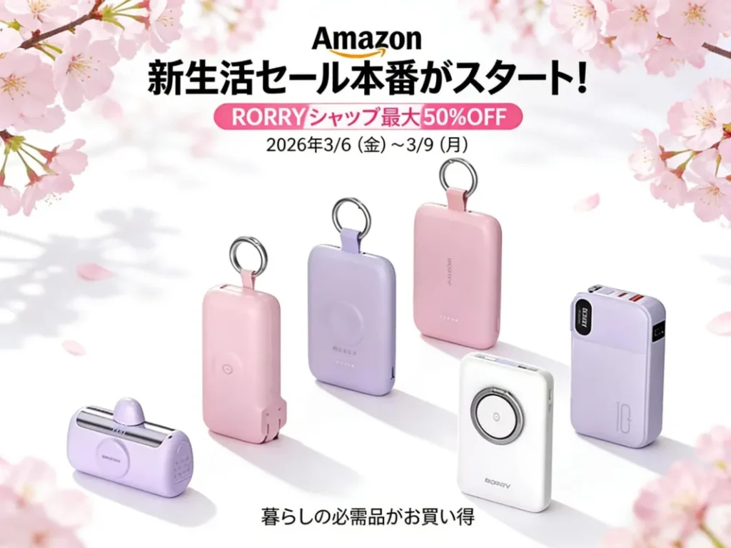 RORRY、Amazon「新生活セール」で人気モバイルバッテリーが最大50%OFF!春のお出かけに便利な注目製品をピックアップ