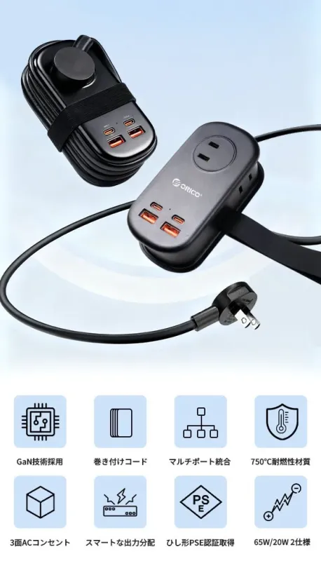 外出先や自宅での充電環境を劇的に改善するスマート電源タップ「ORICO AP3 65W」がクラウドファンディングを開始しました。最大65Wの高出力、GaN急速充電、そして最大7台同時充電に対応し、コード一体型デザインで持ち運びも容易です。複数の充電器を持ち歩く不便さから解放され、あらゆるガジェットの充電をこれ1台で完結させます。 -