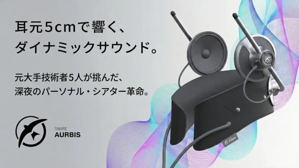株式会社シリウスは、ソニー元技術部長との共同開発による新感覚パーソナル・シアター・スピーカー「SWIRE AURBIS」のクラウドファンディングを開始しました。耳元5cmで響くダイナミックなサウンドで、映画やゲーム、音楽鑑賞をより深い没入感で楽しめます。 -