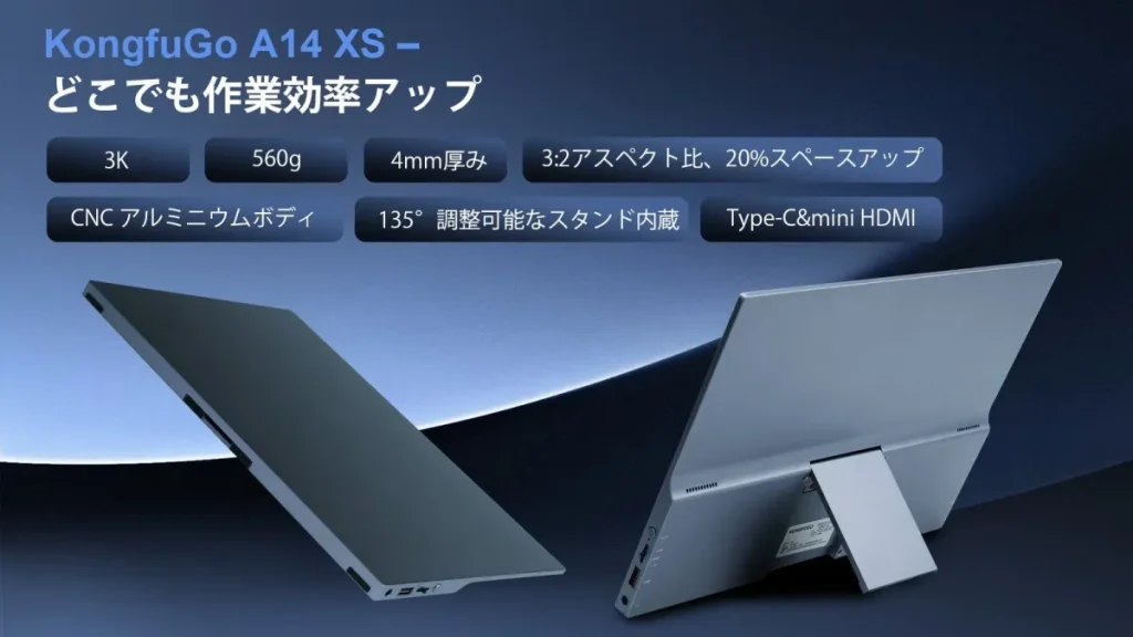 「KungfuGo A14 XS」日本上陸!超軽量560g、3K解像度14インチポータブルモニターの魅力