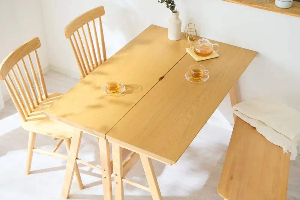 1台でデスクにも食卓にもなるスリムな天然木テーブルがリコメン堂に登場。連結で最大5人掛けに対応し、新生活の限られたスペースを有効活用。