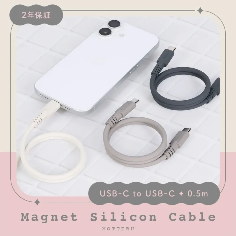 MOTTERUのマグネットシリコンケーブルに0.5mが登場!PD240W対応でデスク周りもすっきり