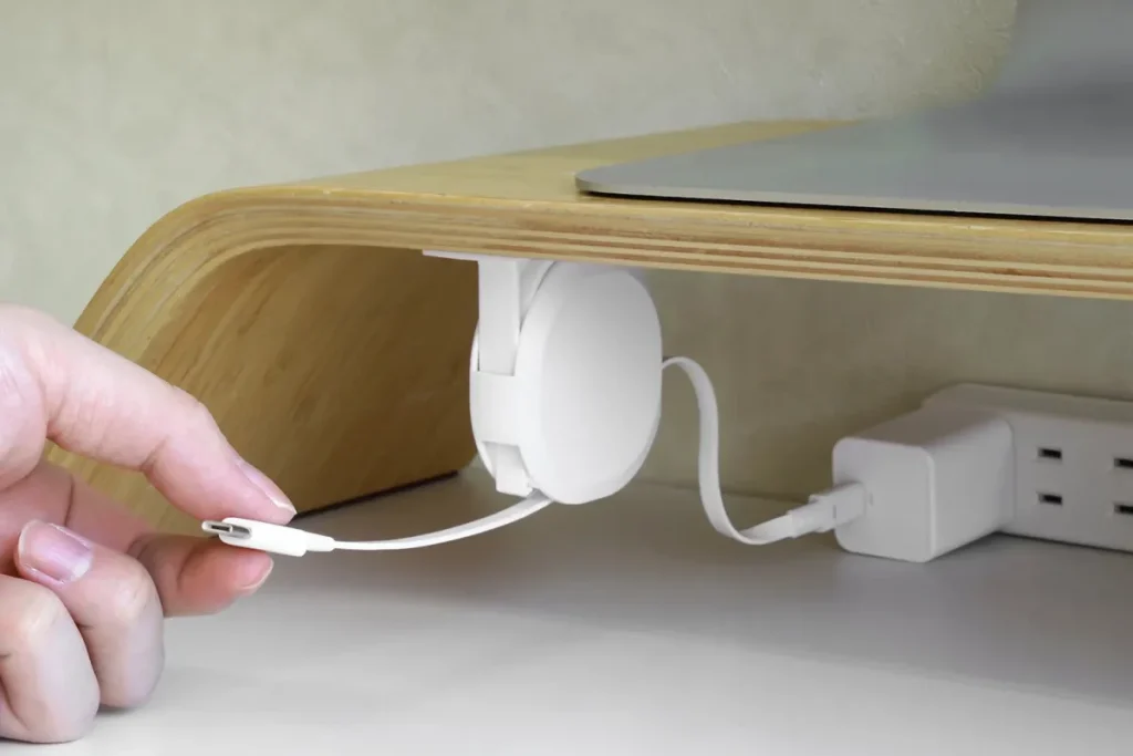 オウルテック、デスク周りを快適にするスタンド付き片引き巻き取り式Type-Cケーブルを家電量販店で販売開始