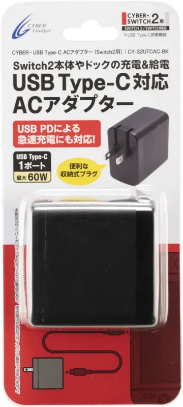 USB PD対応でSwitch2も急速充電!サイバーガジェット『CYBER・USB Type-C ACアダプター(Switch2用)』が登場