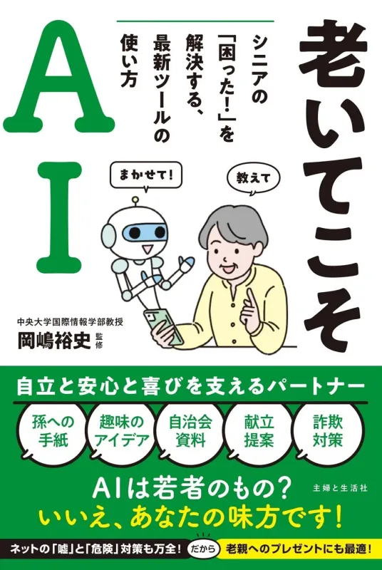 株式会社主婦と生活社から、生成AIの活用法をシニア向けにやさしく解説するガイドブック『老いてこそAI シニアの「困った!」を解決する、最新ツールの使い方』が2026年2月2日に発売されます。手紙の代筆から献立作成、趣味のサポートまで、日々の「困った」をAIが解決する新しいシニアライフのアイデアが満載です。 -