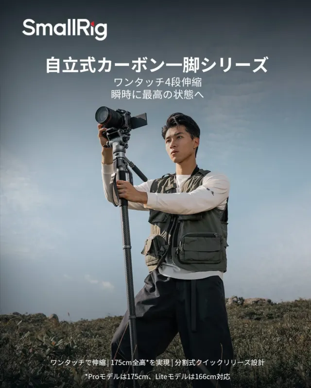 SmallRigから、動画撮影向けの高性能「Pro」と、軽量で携帯性に優れた写真撮影向け「Lite」の2種類の自立式カーボン一脚シリーズが発表されました。ワンタッチでの高さ調節や、それぞれの撮影スタイルに合わせた独自の機能が特徴です。この記事では、各モデルの詳細な特徴や価格、利用シーンについて解説し、あなたの撮影機材選びをサポートします。 -