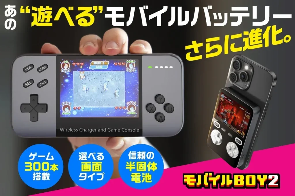 ゲーム300本内蔵の“遊べる”モバイルバッテリー「モバイルBOY」が進化!横型画面と半固体電池で使いやすさ向上