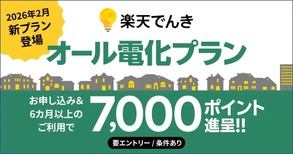 楽天でんきが2026年2月25日より、オール電化住宅向けの「オール電化プラン」の提供を開始します。基本料金0円の市場連動型料金プランで、最大7,000ポイント還元キャンペーンも実施。プランの料金体系、メリット、そして導入を検討する際の注意点や向いているケースについて詳しく解説します。 -
