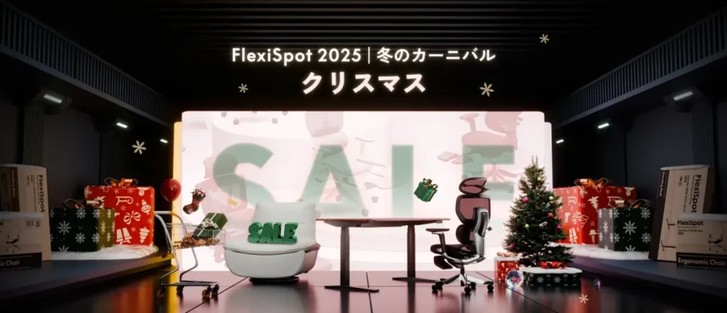 FlexiSpotは、2025年12月2日(火)より「クリスマスセール」を開始しました。電動昇降デスクやオフィスチェア、リクライニングソファなどの人気製品が特別価格で提供されるほか、先着300名限定のギフトや6時間限定のフラッシュセールも実施されます。この記事では、セールの詳細と対象商品について解説します。 -