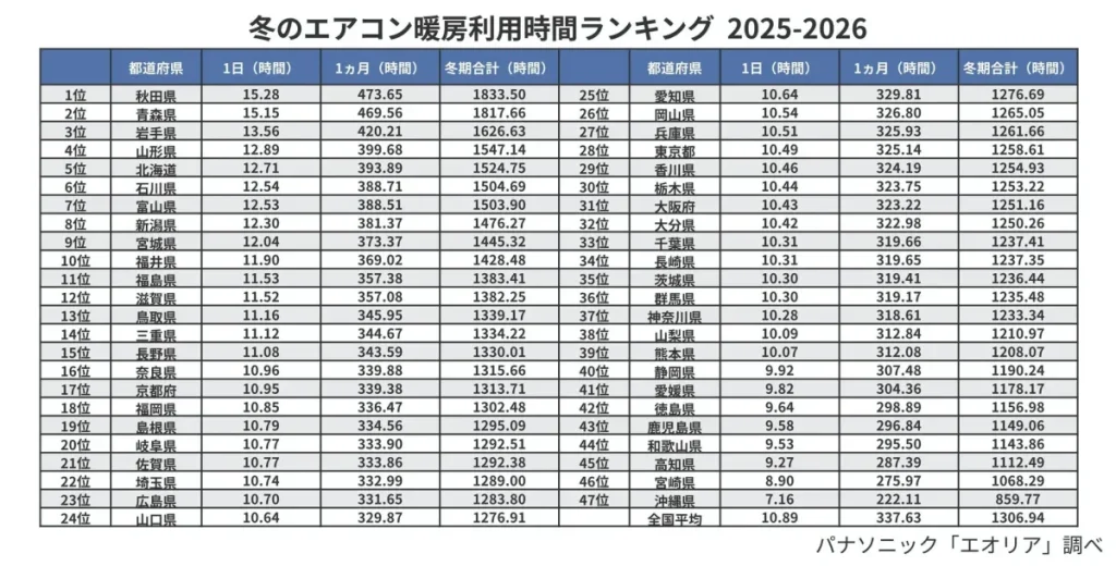 2025年冬のエアコン利用は全国平均1300時間超!電気代高騰の背景と「冬じまい」の重要性