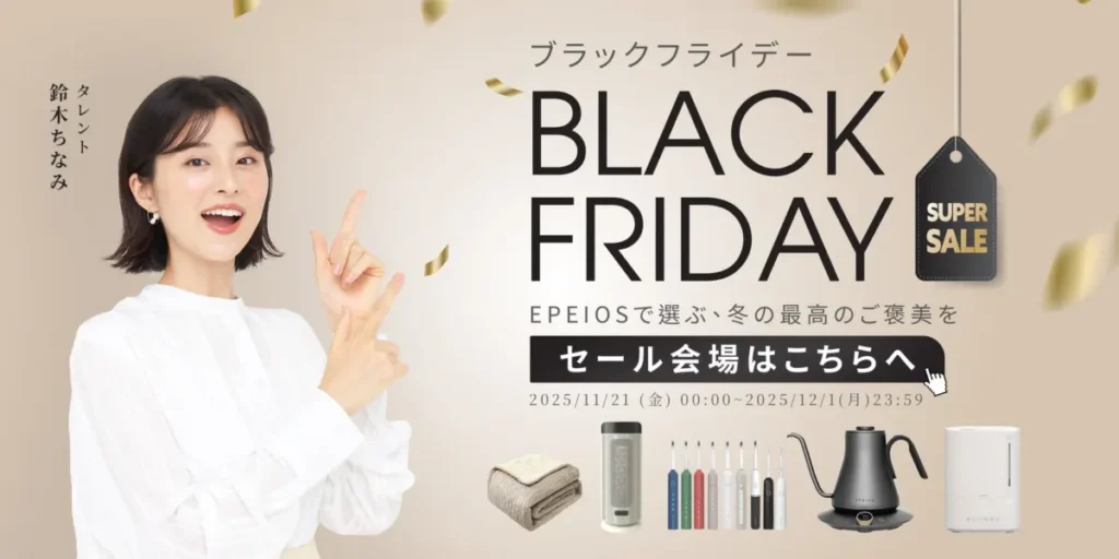 2025年Amazonブラックフライデーおよび先行セールで、EPEIOSのベストセラー製品や秋冬に活躍するアイテムなど30製品以上が最大約40%オフの特別価格で登場します。人気の電動歯ブラシやドリップケトル、スマート家電など、注目のセール対象商品を詳しくご紹介します。 -