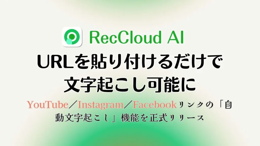 RecCloudが動画URLからの自動文字起こし機能をリリース!YouTube、Instagram、Facebookに対応しコンテンツ活用を加速