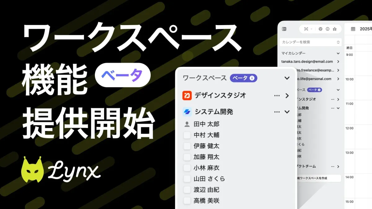 Lynxのワークスペース機能β版は、多様化する働き方の中で生じる日程調整の負担を軽減するために開発されました。主なポイントは以下の通りです。