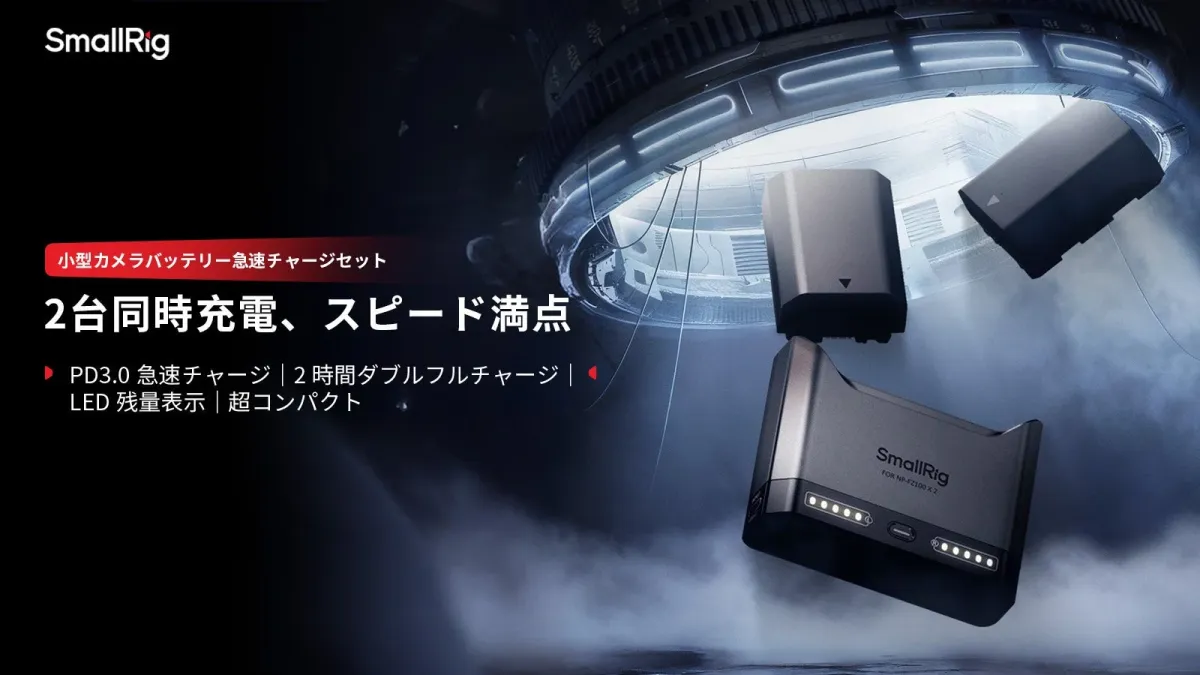 SmallRig Japan株式会社は、カメラクリエイター向けに「小型カメラバッテリー急速チャージセット」を発売しました。このセットは、PD3.0急速充電に対応し、2台のカメラバッテリーを同時にフル充電できるため、撮影現場や出先での電源管理を効率化します。