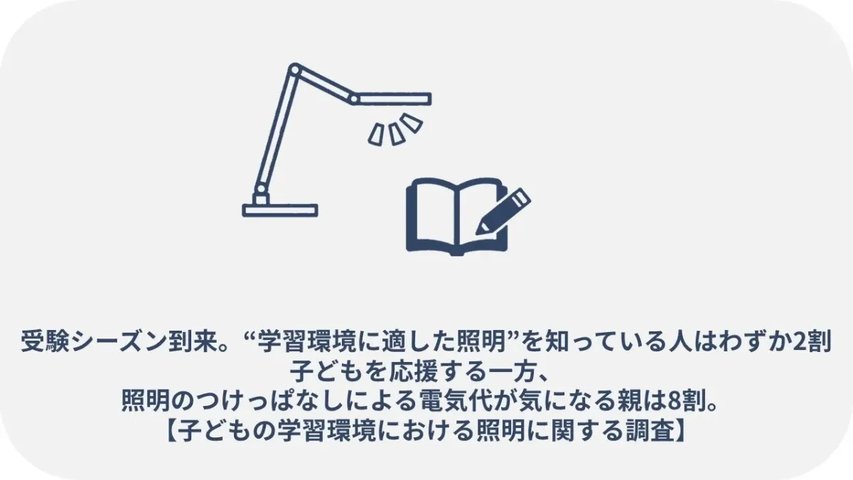 受験期の学習効率を左右する「照明」の盲点:親の8割が電気代を懸念するも、最適な照明の認知度はわずか2割