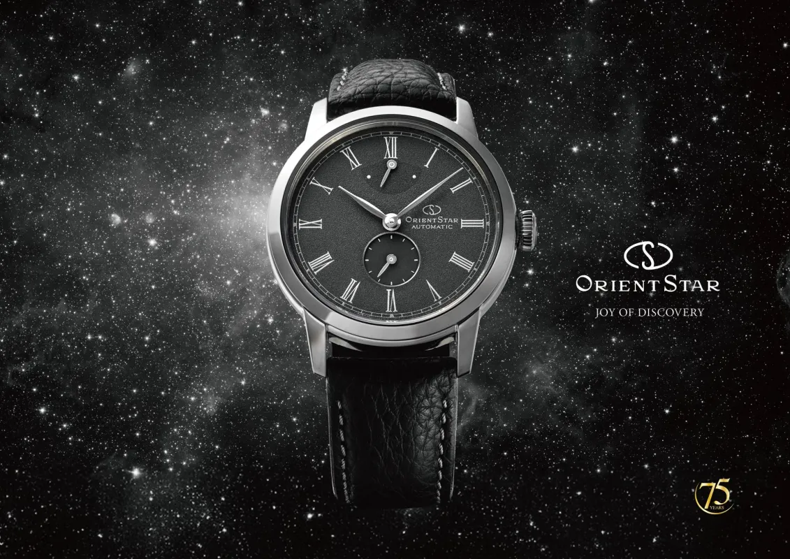 内部には、スモールセコンドを装備した自社製の自動巻きムーブメントF7H44を搭載。日差プラス15秒からマイナス5秒という安定した高精度と、50時間以上のパワーリザーブを備えており、週末に時計を外しても月曜日の朝まで止まることなく動作する利便性を提供します。高品質ムーブメントの精緻な動きは、サファイアクリスタルのシースルーバックから鑑賞することが可能です。75周年記念限定モデルには、裏ぶたに「Orient Star 75th Anniversary」とシリアルナンバーが刻印されており、特別感を演出します。