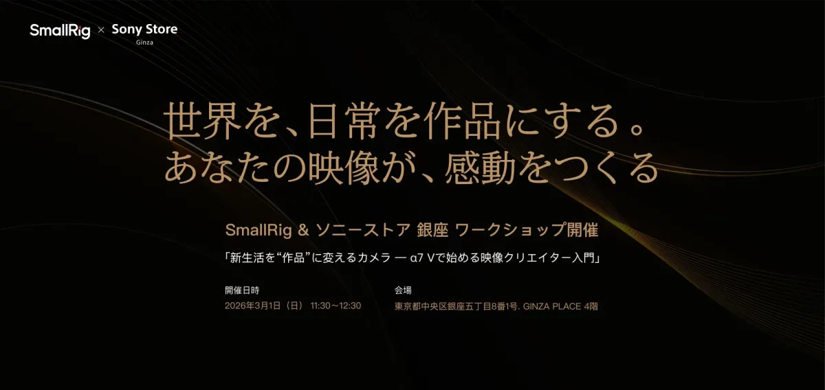 このワークショップは、映像制作に興味があるけれど何から始めていいかわからない方や、現在のスキルをさらに向上させたい方にとって、理想的な機会となるでしょう。ソニーα7 VとSmallRigの組み合わせが、あなたの日常を「作品」へと変える力を与えてくれるはずです。ぜひこの機会に参加を検討してみてはいかがでしょうか。