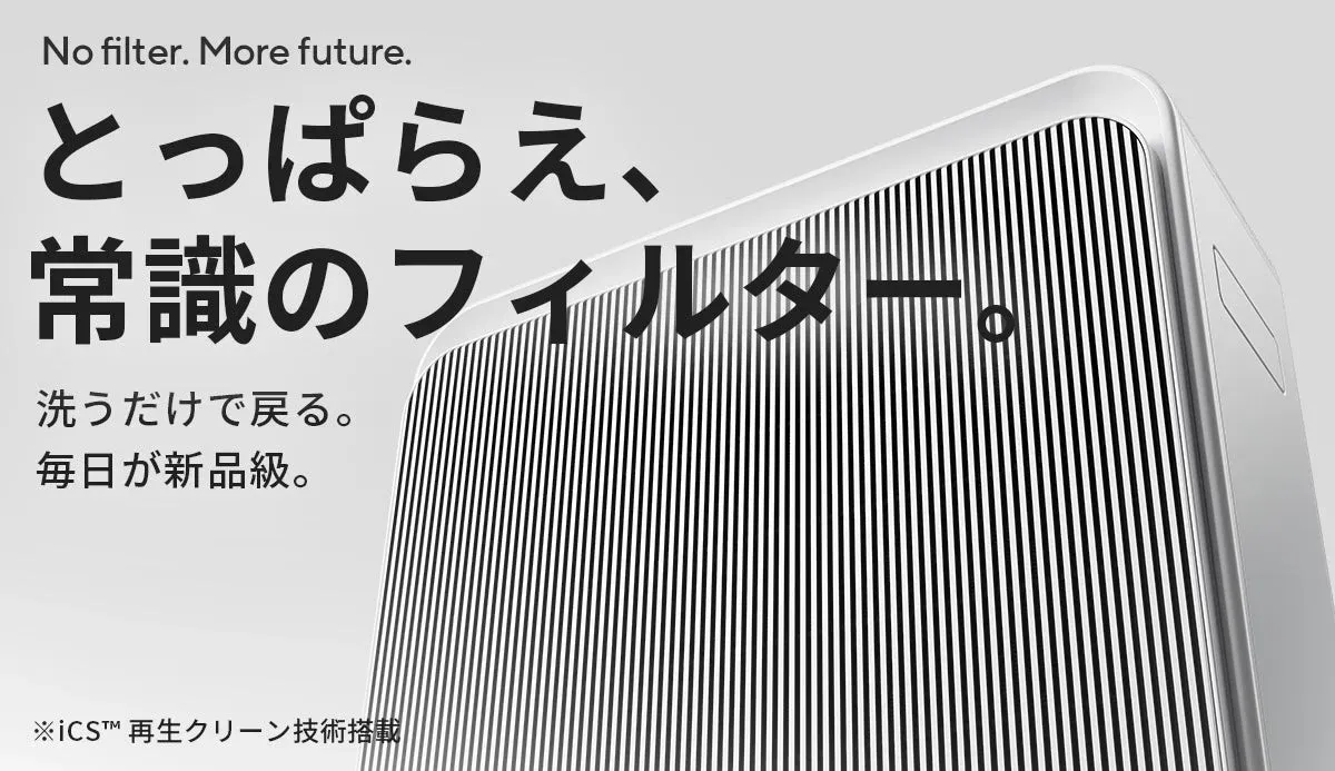 フィルター交換不要で経済的: 独自のiCS®特許技術により、フィルターを水洗いするだけで性能が再生し、年間約2万円のランニングコスト削減が見込めます。